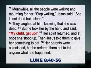 LUKE 840-42 So it was when. Web Its the raising of Jairus daughter. Web It is never too late for Jesus to help those in need.